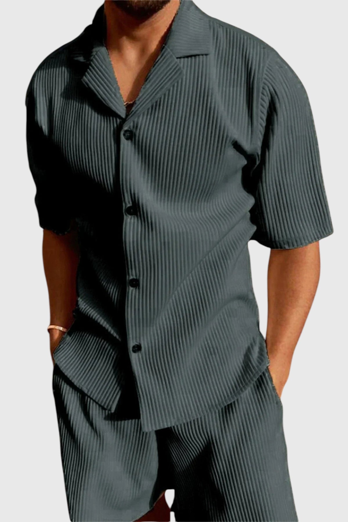 Confeccionado con pana de alta calidad y transpirable, este conjunto aporta un toque sofisticado a tu guardarropa gracias a su clásico diseño abotonado. Perfecto para la oficina o un brunch de fin de semana: atemporal y versátil.